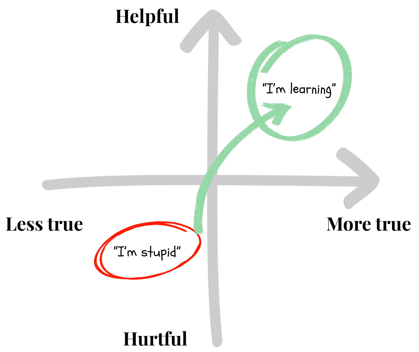 A lot of times, changing just one word can make a thought more true, like swapping “never” or “always” with “sometimes” (e.g., “I never win” can become “I sometimes win”).