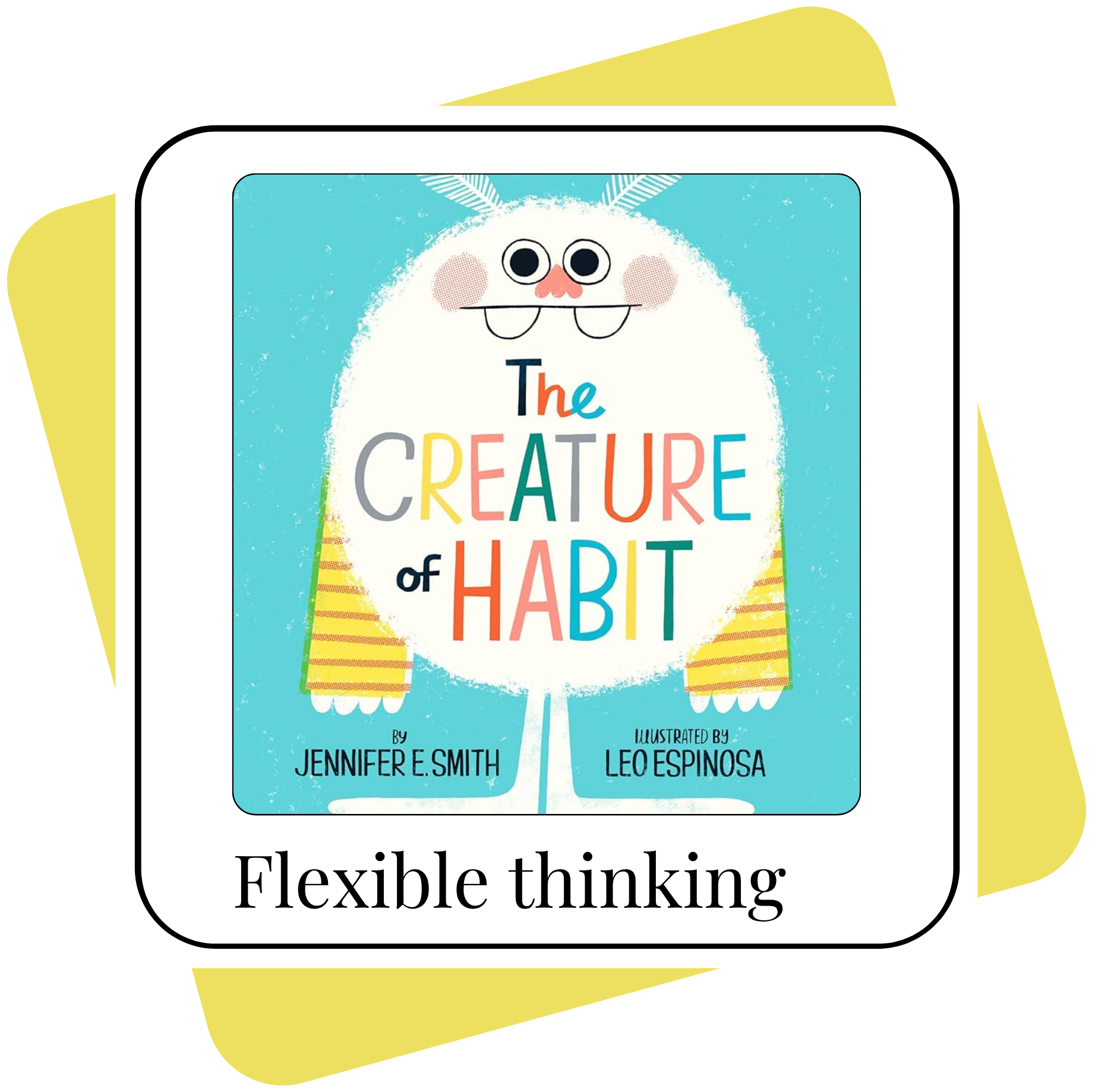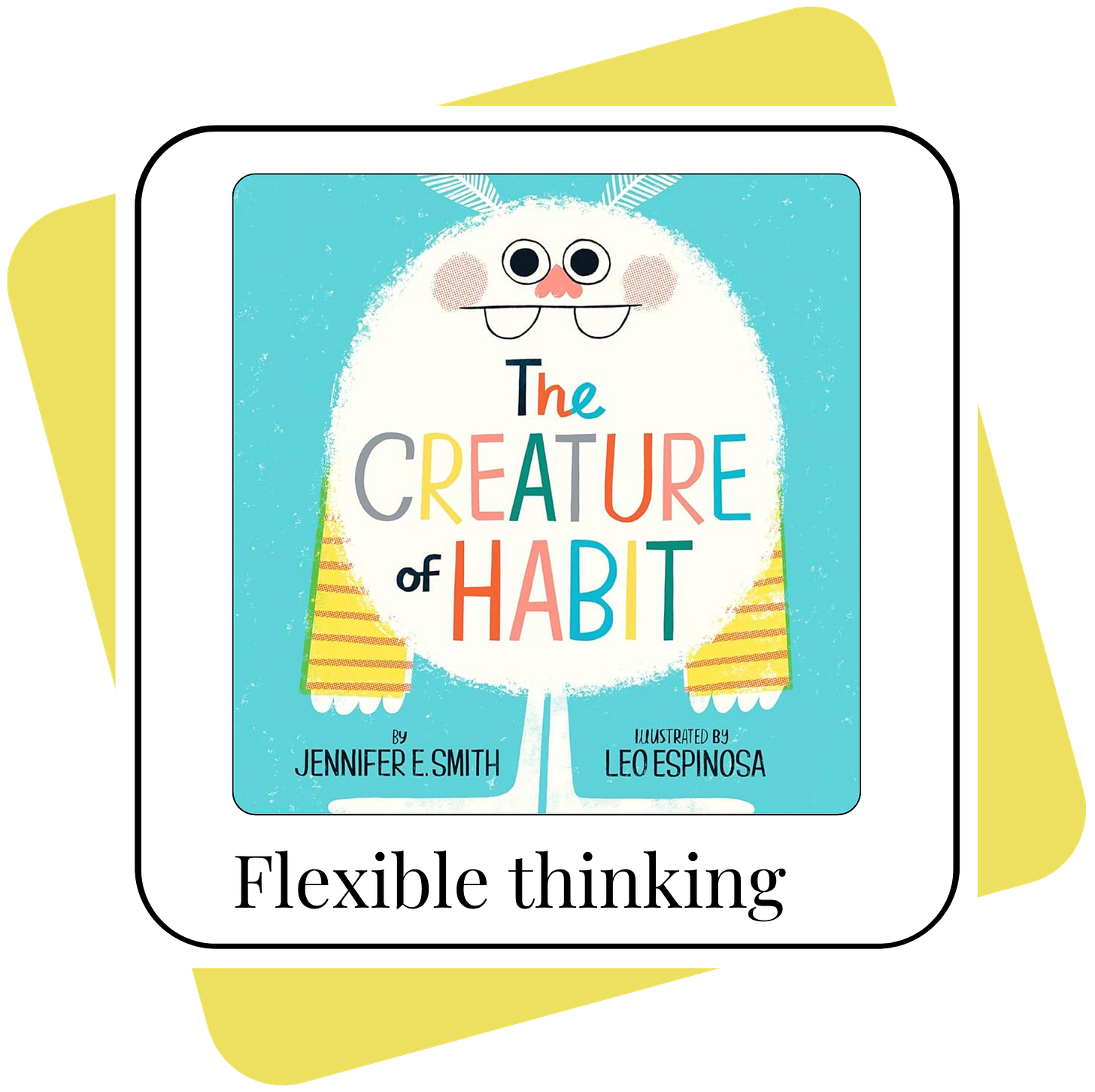 I watched the video of Creature of Habit that was linked, and I thought this book was so charming and did a great job representing the benefits of flexible thinking in terms of recognizing each other’s individual approaches to life, and being willing to try some different ways of doing things in order to enjoy life together. With those positive feelings regarding flexible thinking that the book left me with, I was so excited to learn that science has shown that children can be trained to strengthen this skill, and that this will make it easier for kiddos to collaborate with peers, teachers, and parents/caregivers. I never thought about how important it is to work on being willing to be flexible sometimes! Thanks :)