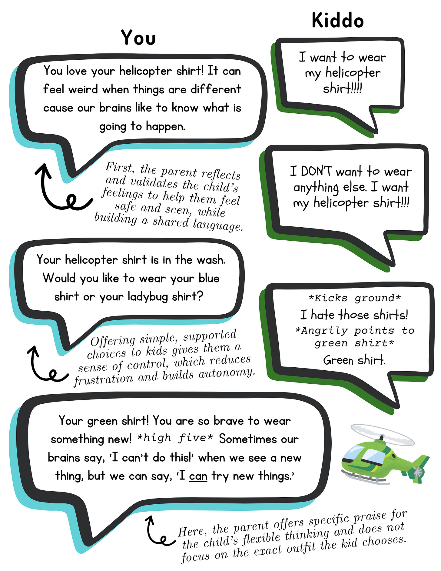 It can be frustrating for parents when their kids are struggling with transitions or stuck in a routine! To find some strategies for managing your own stress during difficult parenting moments, check out our “Parents’ Guide to Keeping Your Cool” handout. 🌸