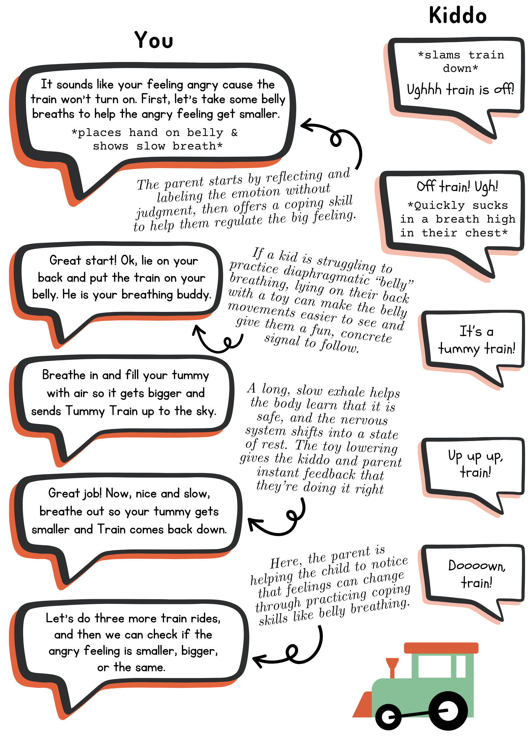 Last week, we recommended Tummy Ride, which highlights the concept of belly breathing â the idea that taking deep and slow breaths low in the diaphragm can help us make big emotions smaller and help us feel safer when we are stressed (read that post here). This week, we share some resources to try belly breathing with your kiddo at home, and answer your real-life questions about calming down big emotions.