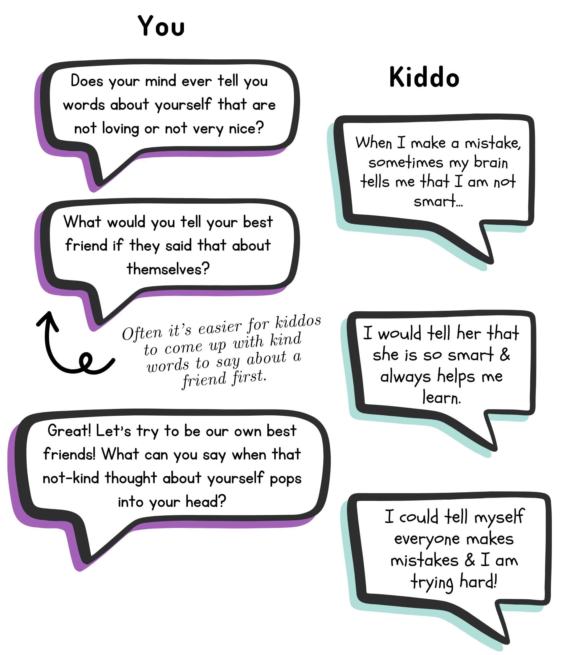 Try out these prompts for encouraging your kid to practice being kind to themself: